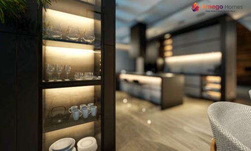 Premium crockery unit design with built-in lighting for a luxury touch.