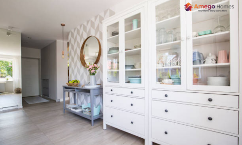 Classic white crockery unit design that enhances brightness and openness.